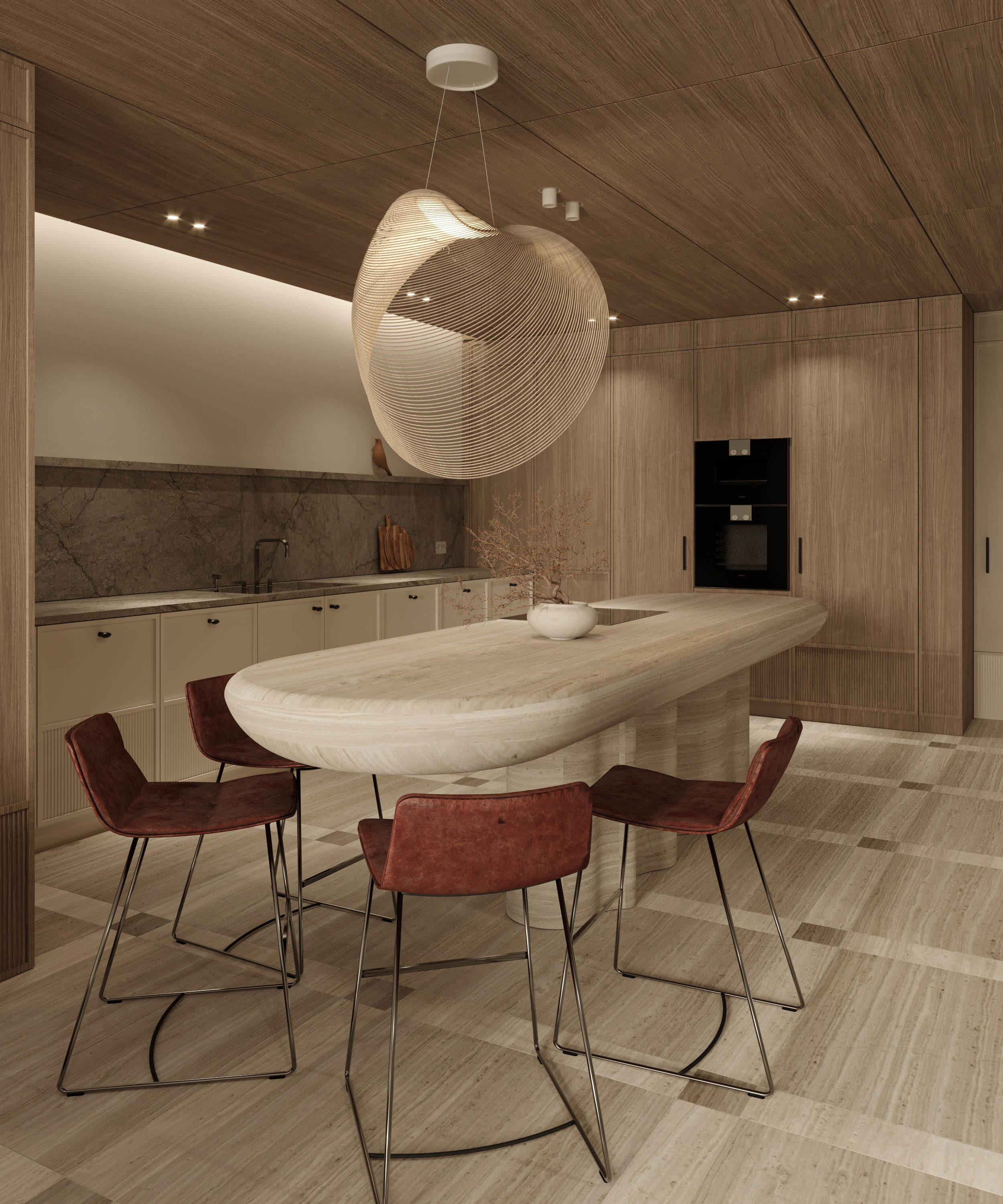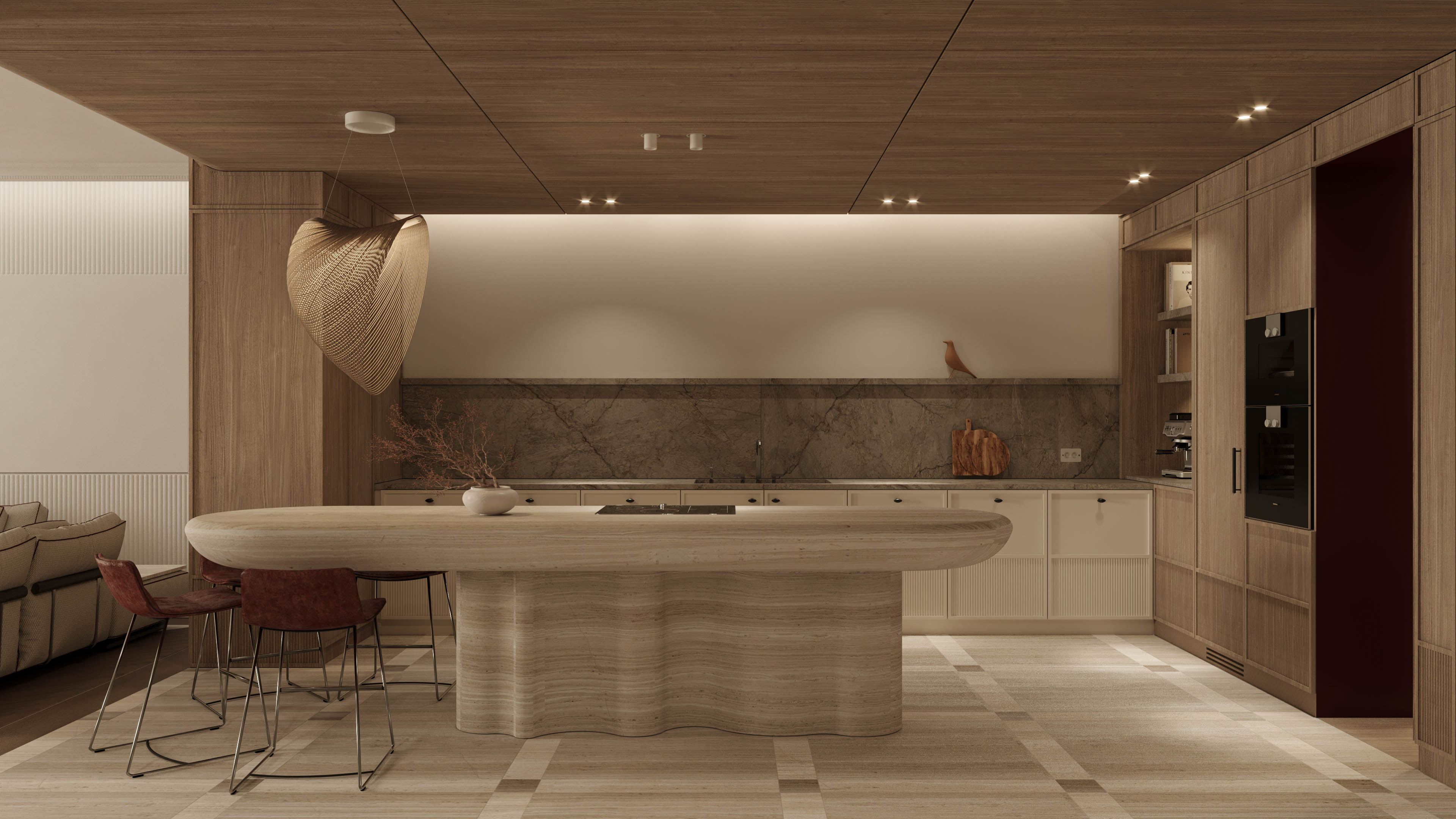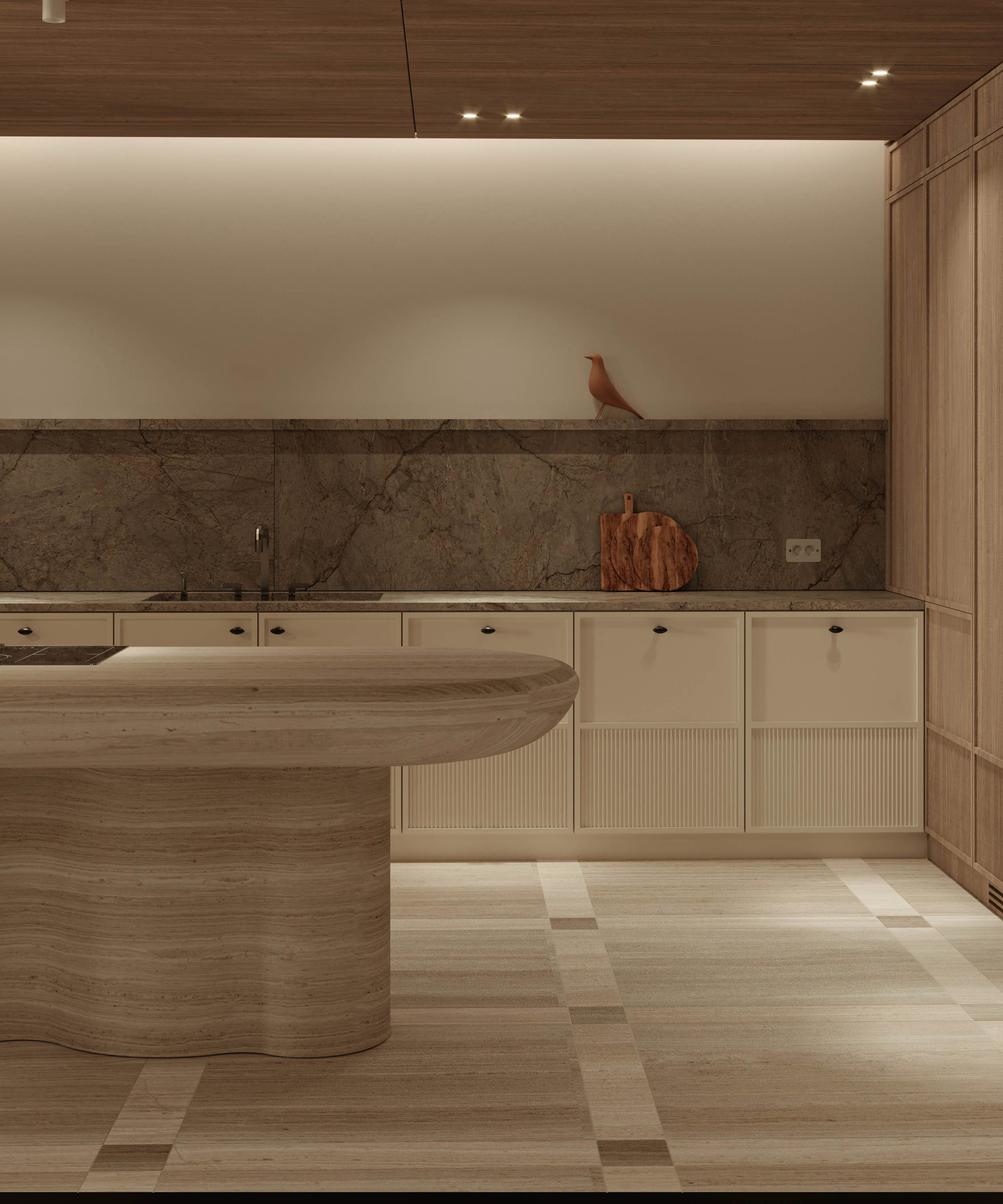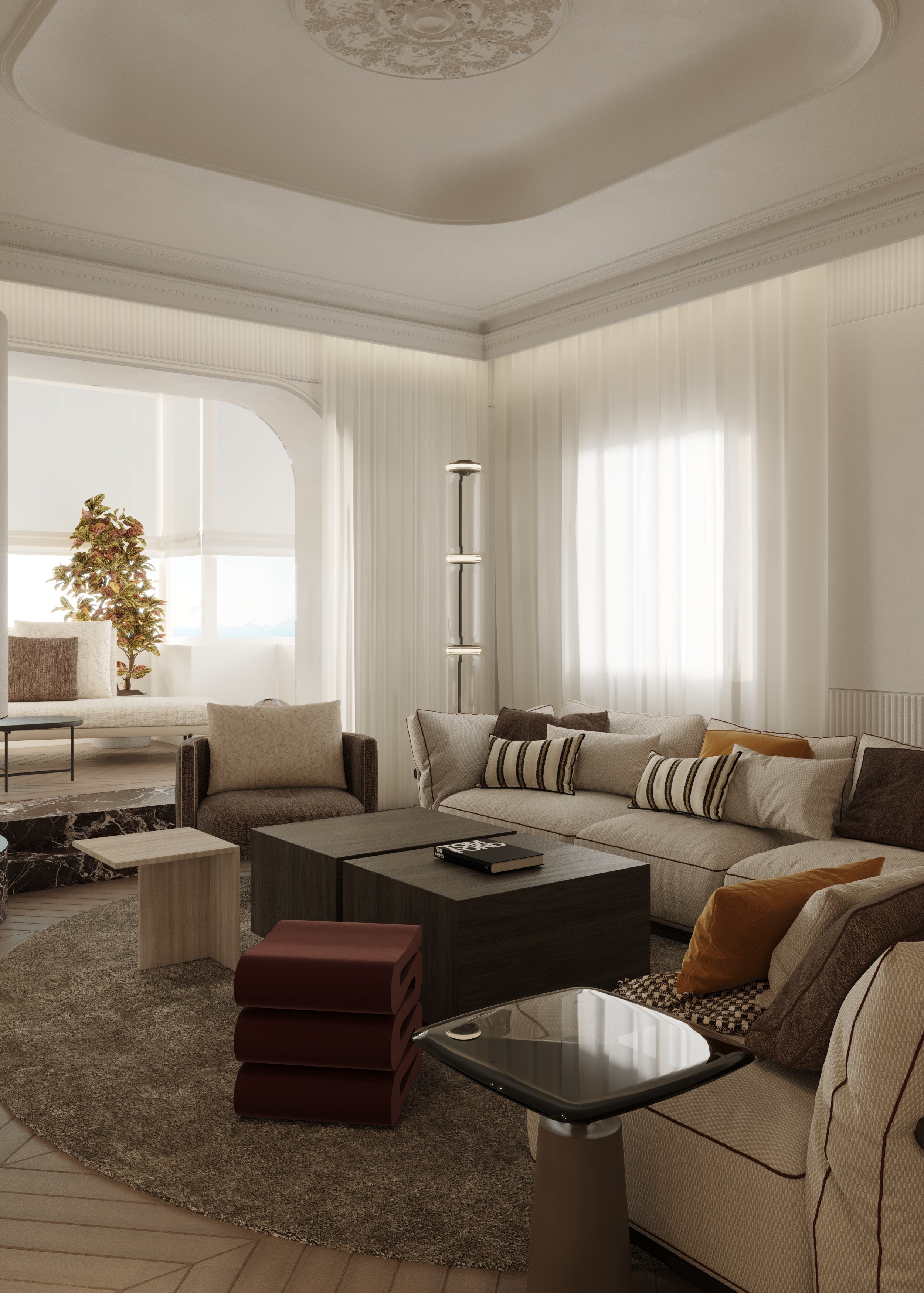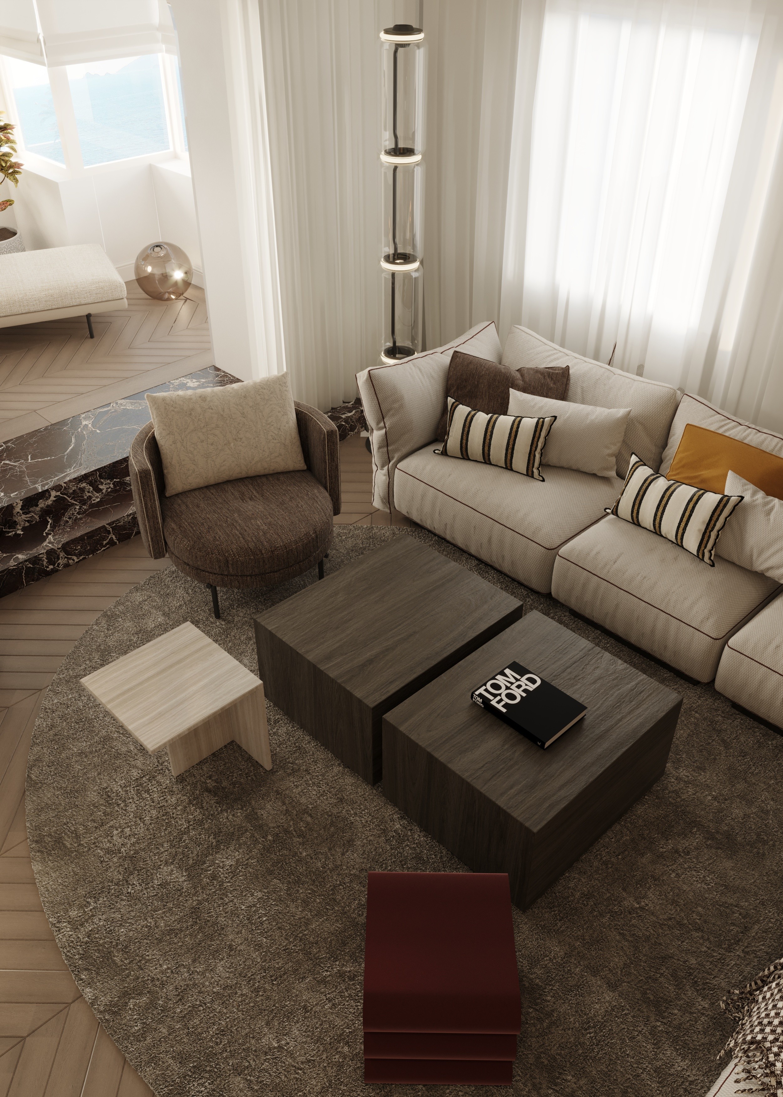 Elevada sobre el rumor del mar, esta casa abraza el horizonte con calma. El clasicismo se insinúa en molduras y algunos detalles de una forma suave, mientras lo moderno se respira en cada línea. Los materiales dialogan en equilibrio, donde cada estancia ha sido pensada con intención, de forma íntima y consciente. Los muebles de diseño acompañan sin imponerse. Donde muchos de ellos han sido diseñados específicamente para esta vivienda, siendo piezas únicas. Un refugio cálido donde el diseño no solo acompaña, sino que amplifica la emoción de habitar. Un lugar que no solo se vive, se siente.