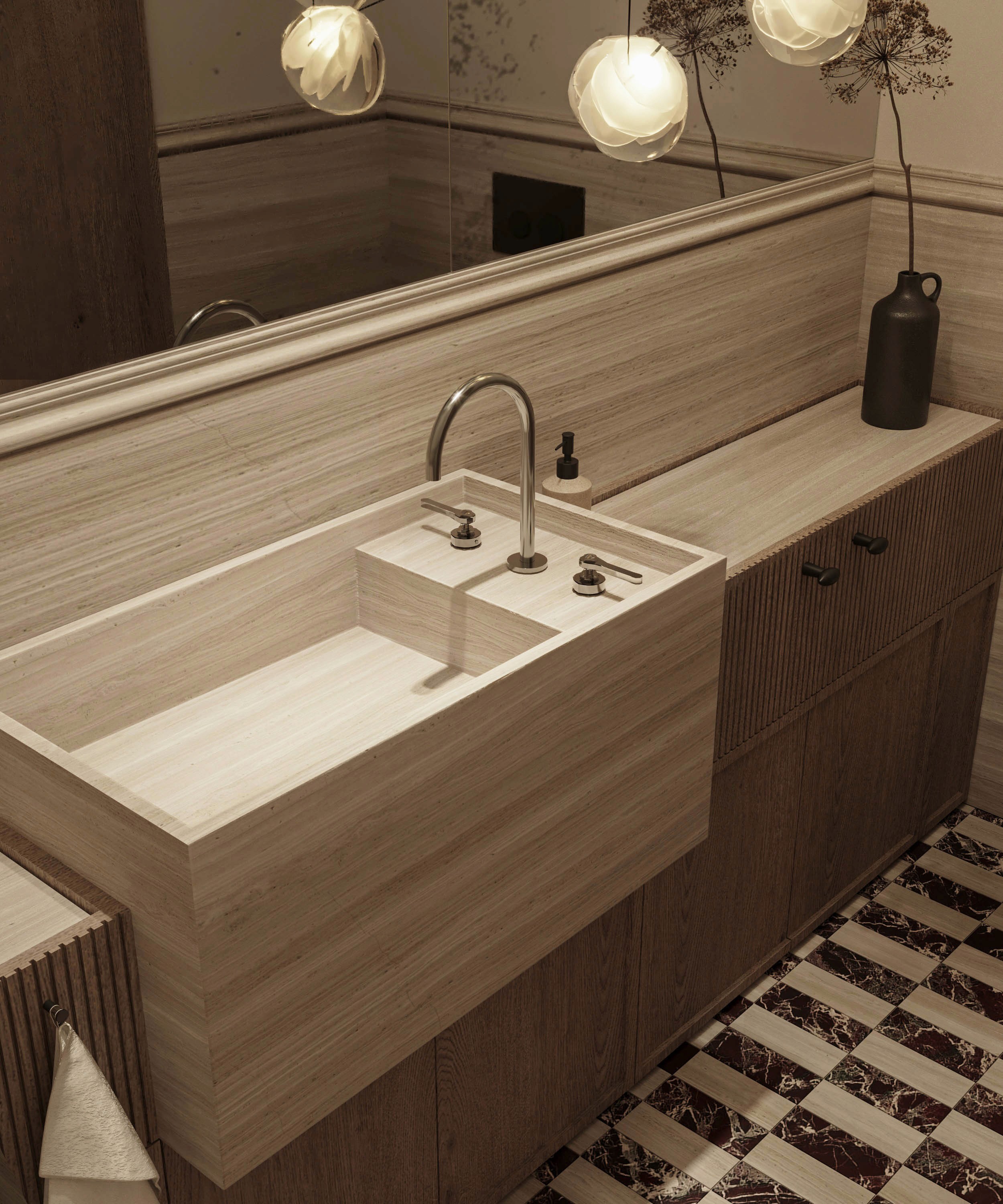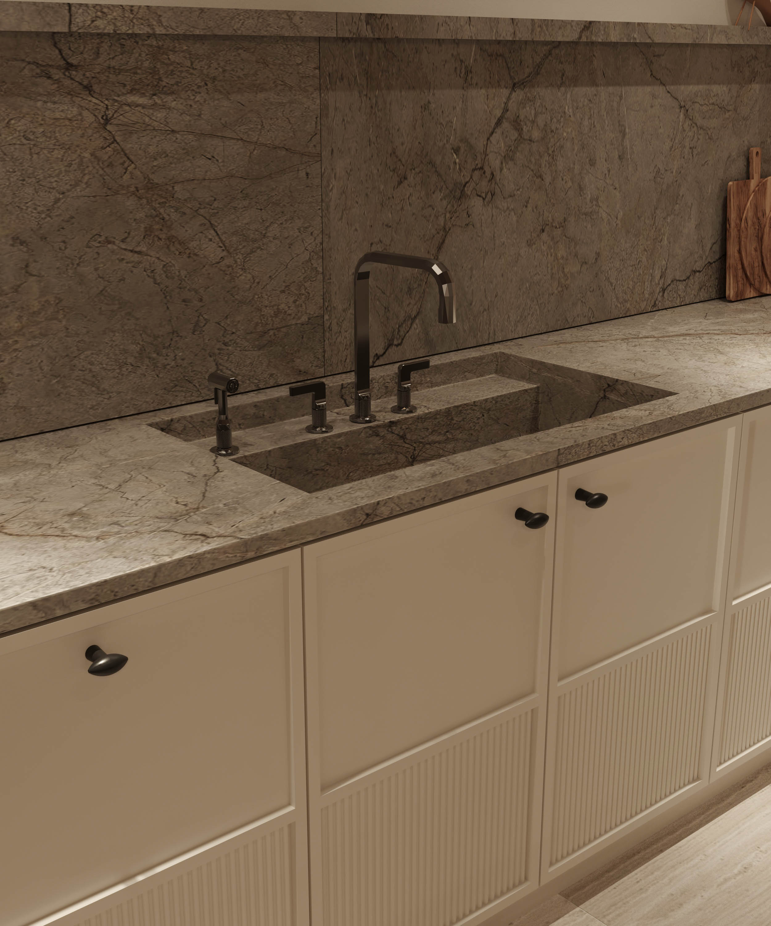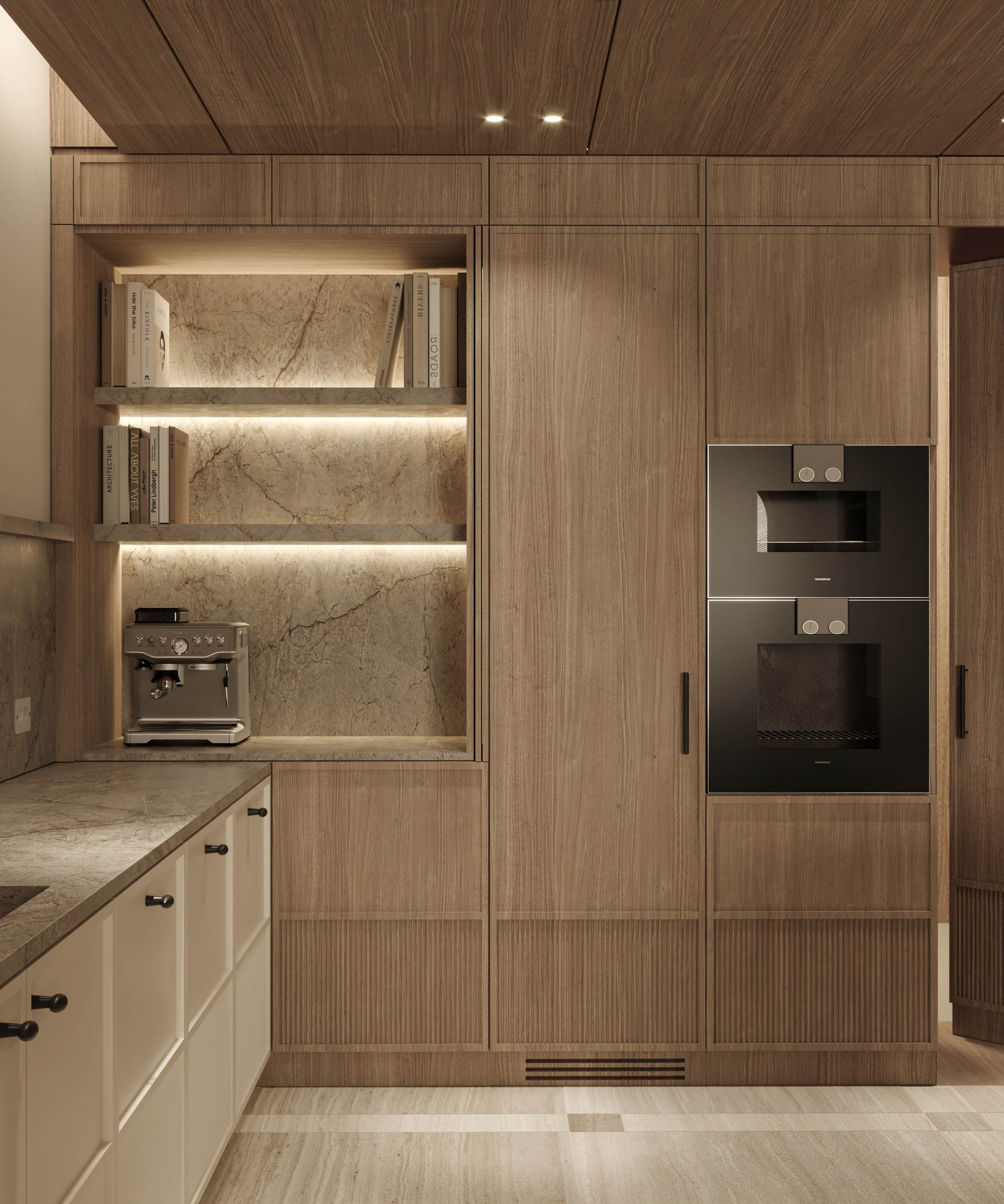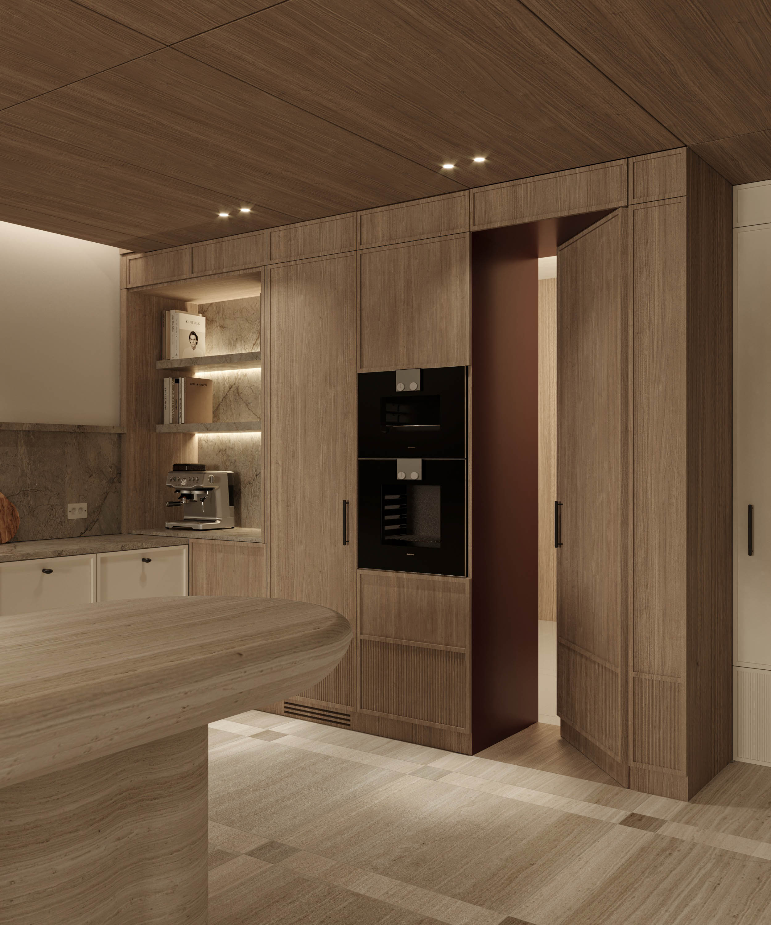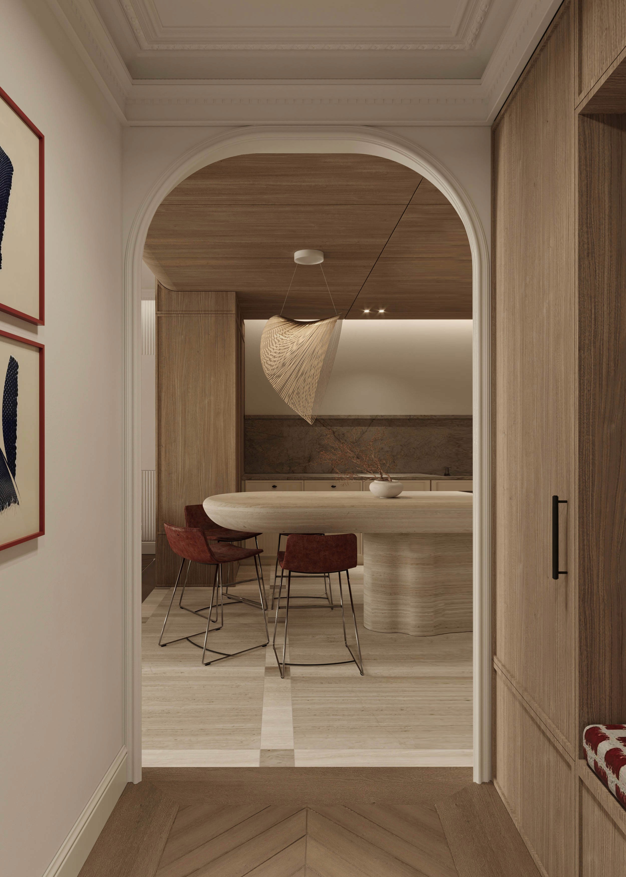 Elevada sobre el rumor del mar, esta casa abraza el horizonte con calma. El clasicismo se insinúa en molduras y algunos detalles de una forma suave, mientras lo moderno se respira en cada línea. Los materiales dialogan en equilibrio, donde cada estancia ha sido pensada con intención, de forma íntima y consciente. Los muebles de diseño acompañan sin imponerse. Donde muchos de ellos han sido diseñados específicamente para esta vivienda, siendo piezas únicas. Un refugio cálido donde el diseño no solo acompaña, sino que amplifica la emoción de habitar. Un lugar que no solo se vive, se siente.