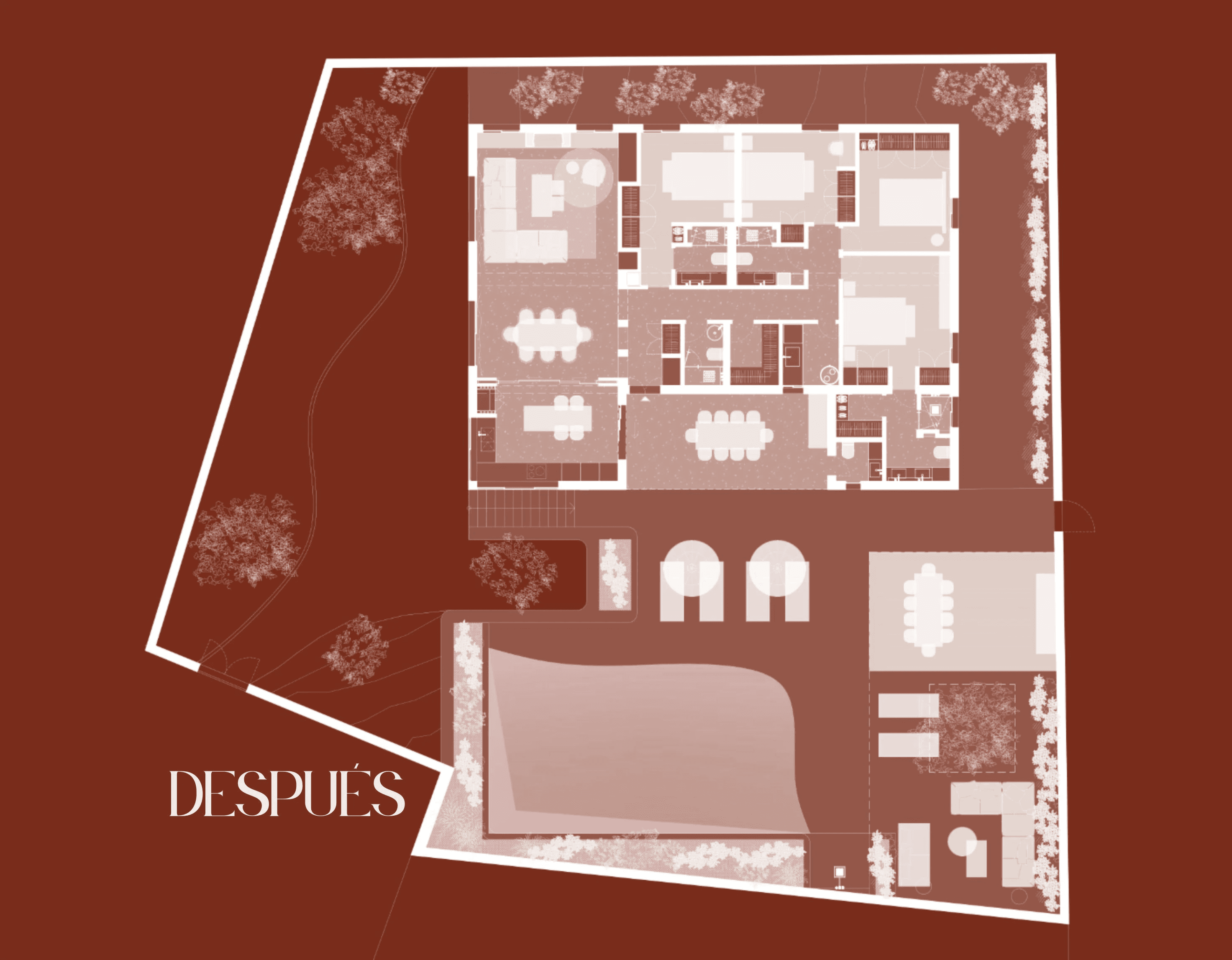 La Toba es una reforma integral que reinterpreta la esencia rural con un enfoque contemporáneo. La nueva distribución organiza el espacio en torno a una pastilla central de instalaciones, liberando la planta y dando protagonismo a una cocina luminosa en esquina, conectada visualmente con el salón y abierta a la terraza comedor, la piscina y el jardín. Materiales naturales como madera, estuco y un mobiliario rústico aportan calidez y coherencia a toda la vivienda, que ahora cuenta con dos suites, dos baños adicionales y un aseo. Un hogar que combina luz y funcionalidad en cada detalle.